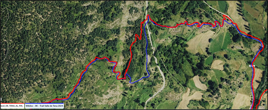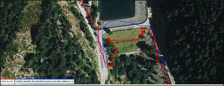 En azul, el track que yo tenía, y en rojo, por donde iban los banderines.